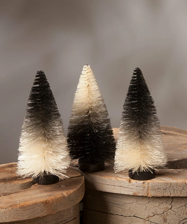 Add a spooky backdrop to your Halloween scenes with these Black & White Ombre Mini Bottle Brush Trees.
