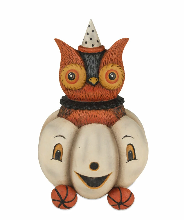 Bring a whimsical mood to your Halloween decor with this amusing Owlbert Pumpkin Carriage designed by artist Johanna Parker.
