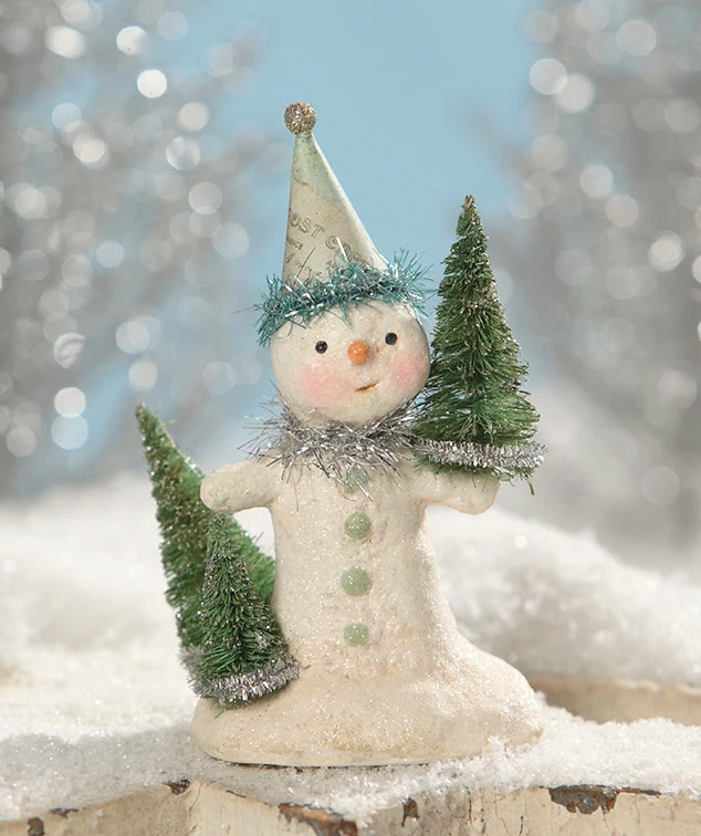 Bring a festive touch of whimsy to your holiday decorating with this amusing little Party in Green Snowman designed by artist Michelle Allen.