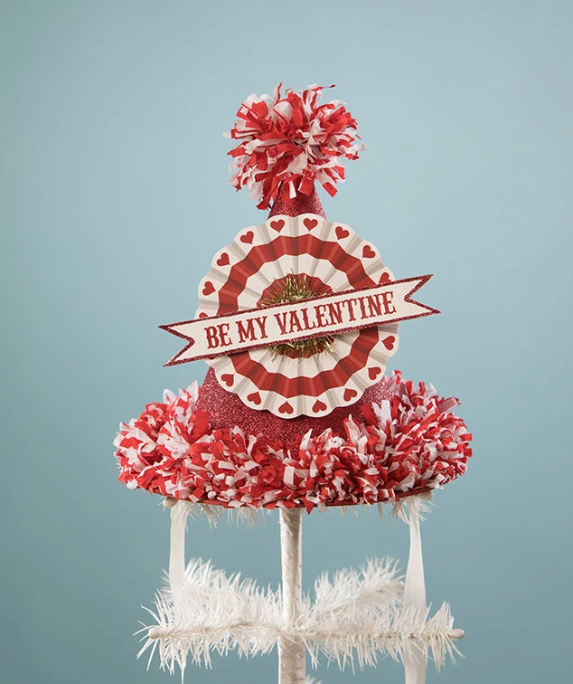 Celebrate the love with this versatile Valentine Party Hat tabletop display or tree topper.