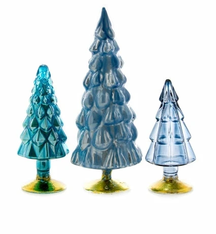 Get creative with these blue hue glass trees in assorted shapes, sizes, and color tones.