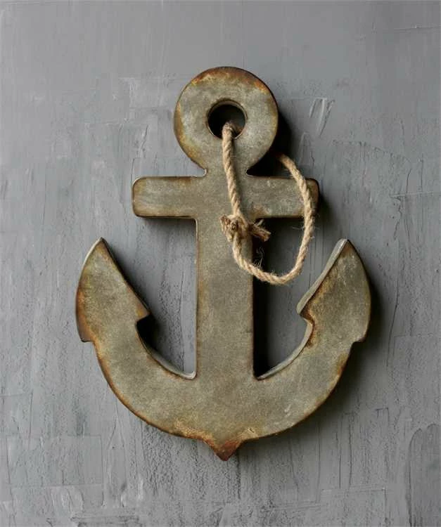 Give your home a vintage nautical feel with this aged zinc color metal anchor wall decor.