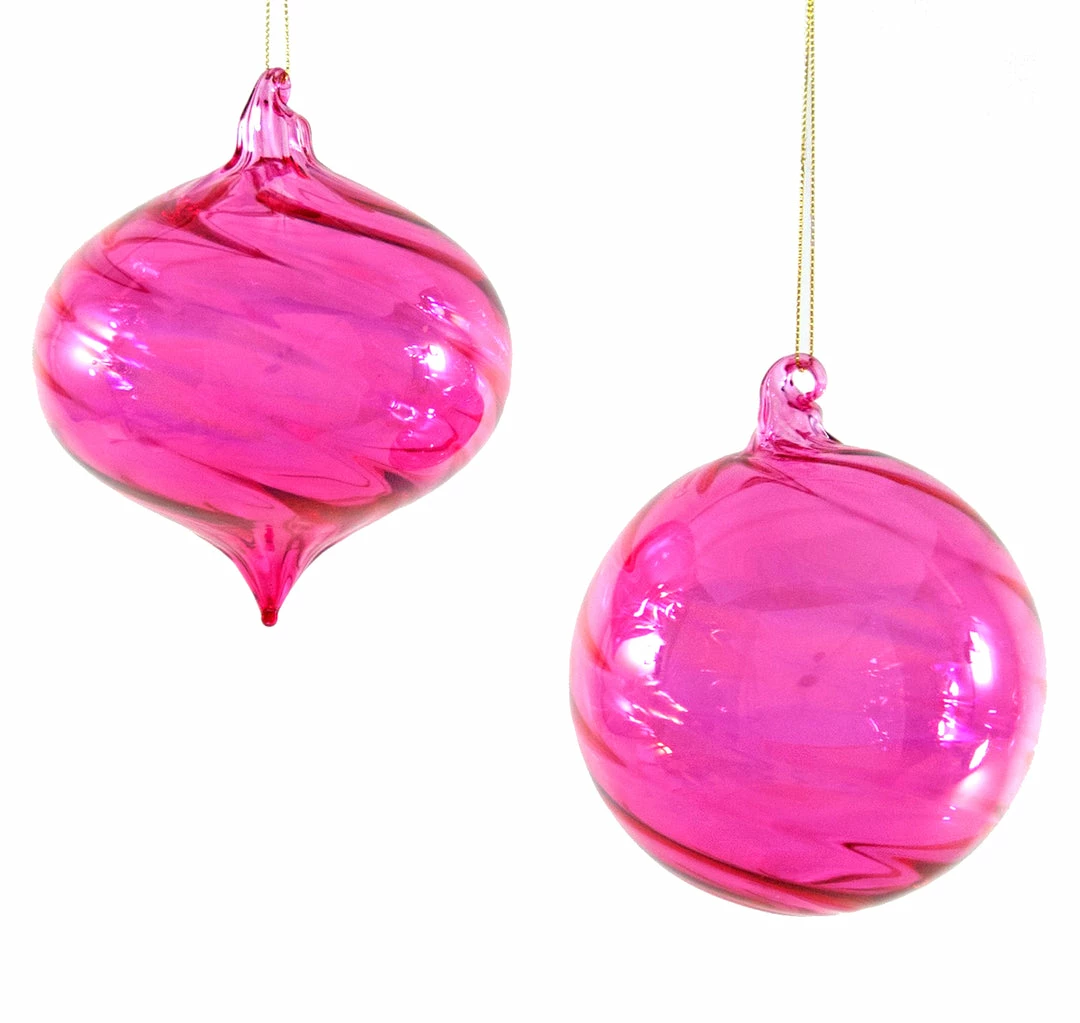 Fuchsia Pink Twisted Clear Glass Ornaments