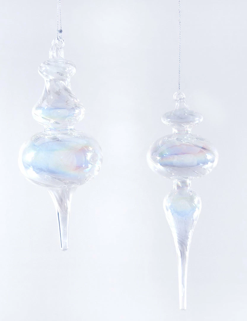 Swirl Glass Three Layer Finial Ornaments with feathers.