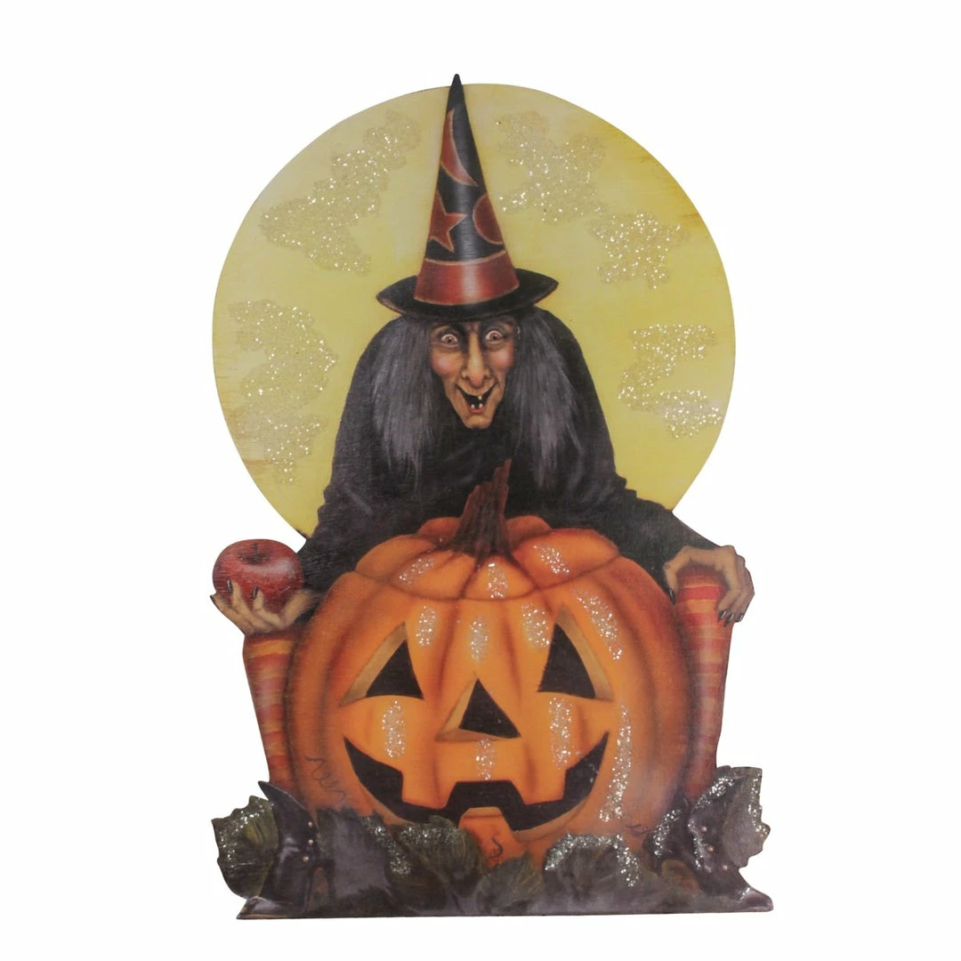 Give your Halloween decorating vintage appeal with this striking Midnight Witch with Jack-O-Lantern Dummy Board.
