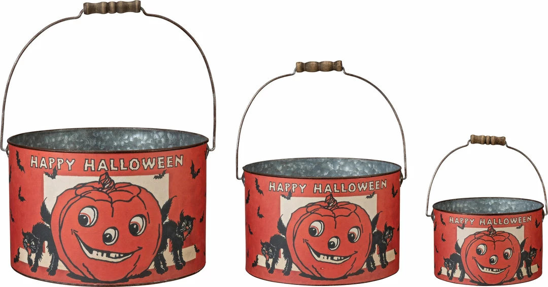 Give your Halloween decorating vintage appeal with these Retro Happy Halloween Buckets.