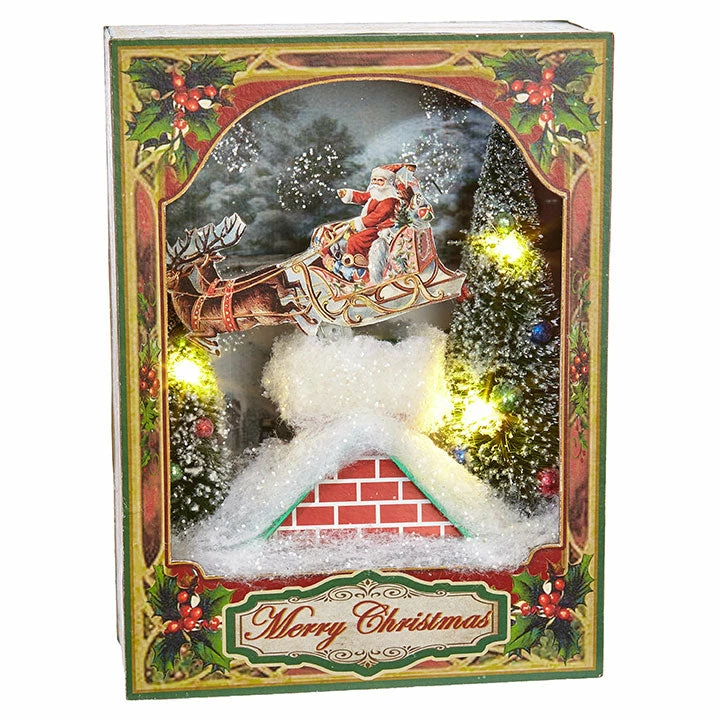 Watch Santa and his reindeer fly in this vintage-inspired Christmas shadowbox with lights.