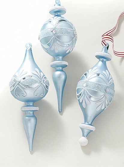 Make your tree beautiful with these designer Vintage Elegance Blue Finial Ornaments.