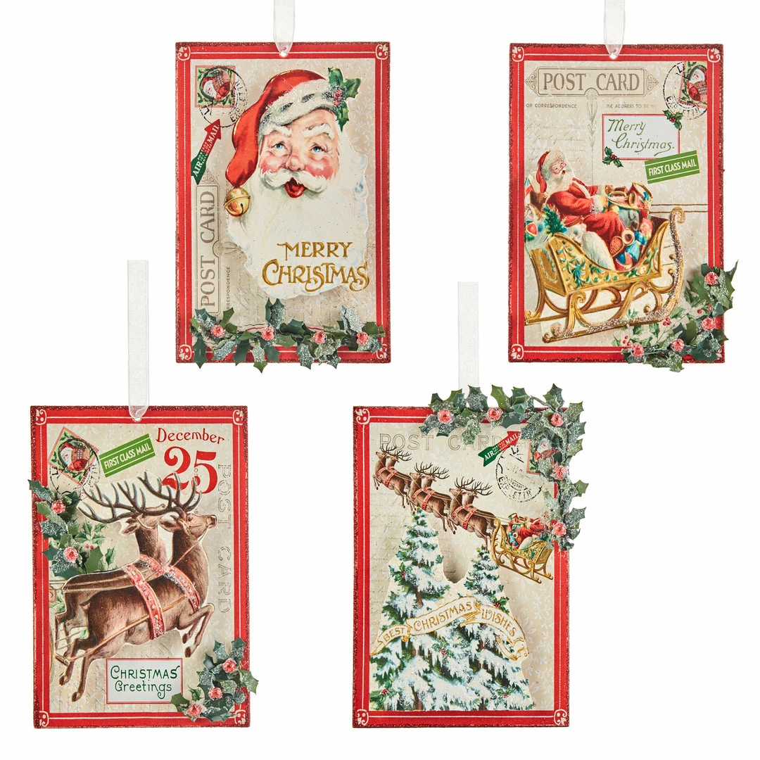 - 4 assorted post card ornaments