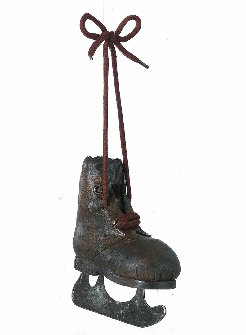 Remember skating on the frozen pond when you were a kid? This antique brown faux leather ice skate ornament will bring an old fashioned look to your Christmas tree.