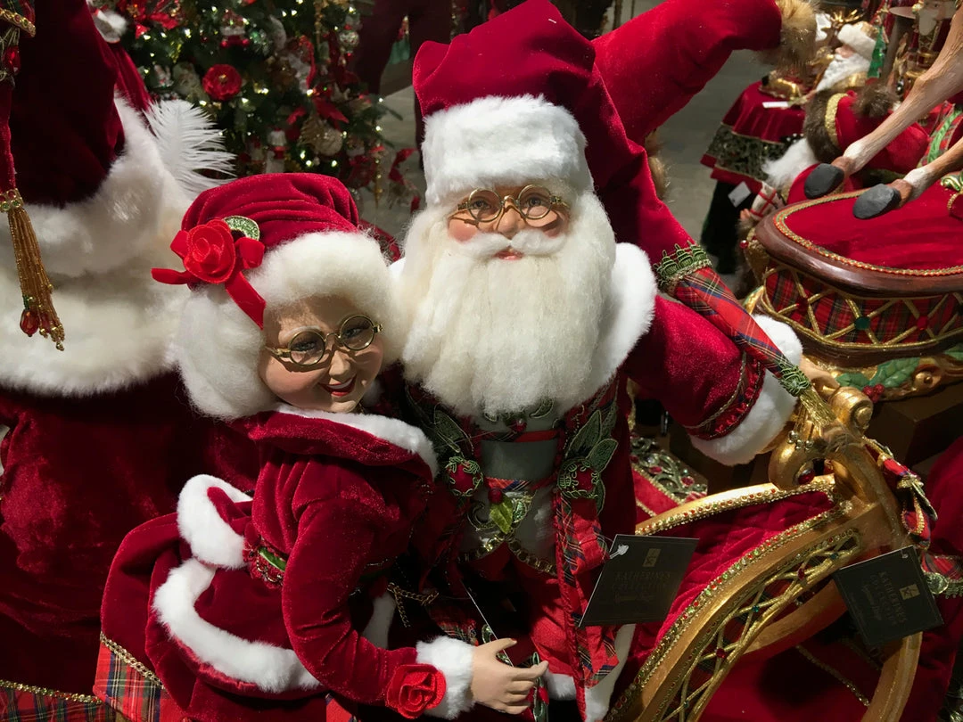 Bring elegance to your Christmas decor with this magical Christmas Wishes Mr. & Mrs. Claus with Sleigh set by Katherine’s Collection.