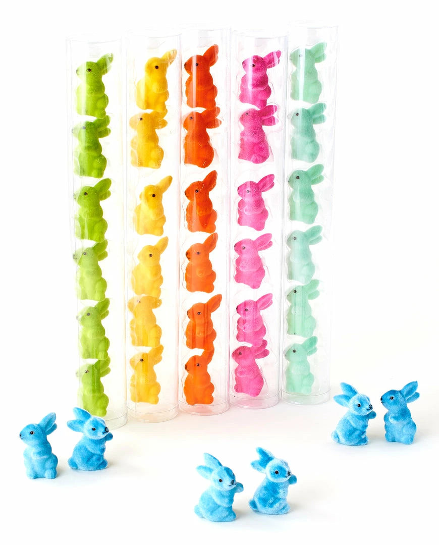 Brighten up your Easter decor with these cute colorful Flocked Bunny Rabbits.