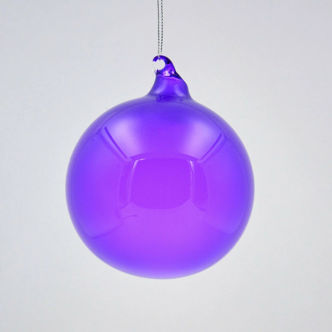 Personalize your holiday decor with these hand-blown translucent Light Purple Bubblegum Glass Ball Ornaments by designer Jim Marvin.
