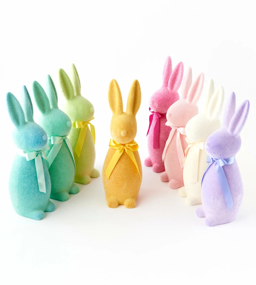 Hop, hop, hop! Say, “Happy Easter” with these pretty Pastel Flocked Bunny Rabbits, finished off with a satin ribbon.