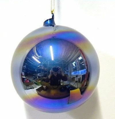 Glass ornaments with luminous colors that change from different angles.