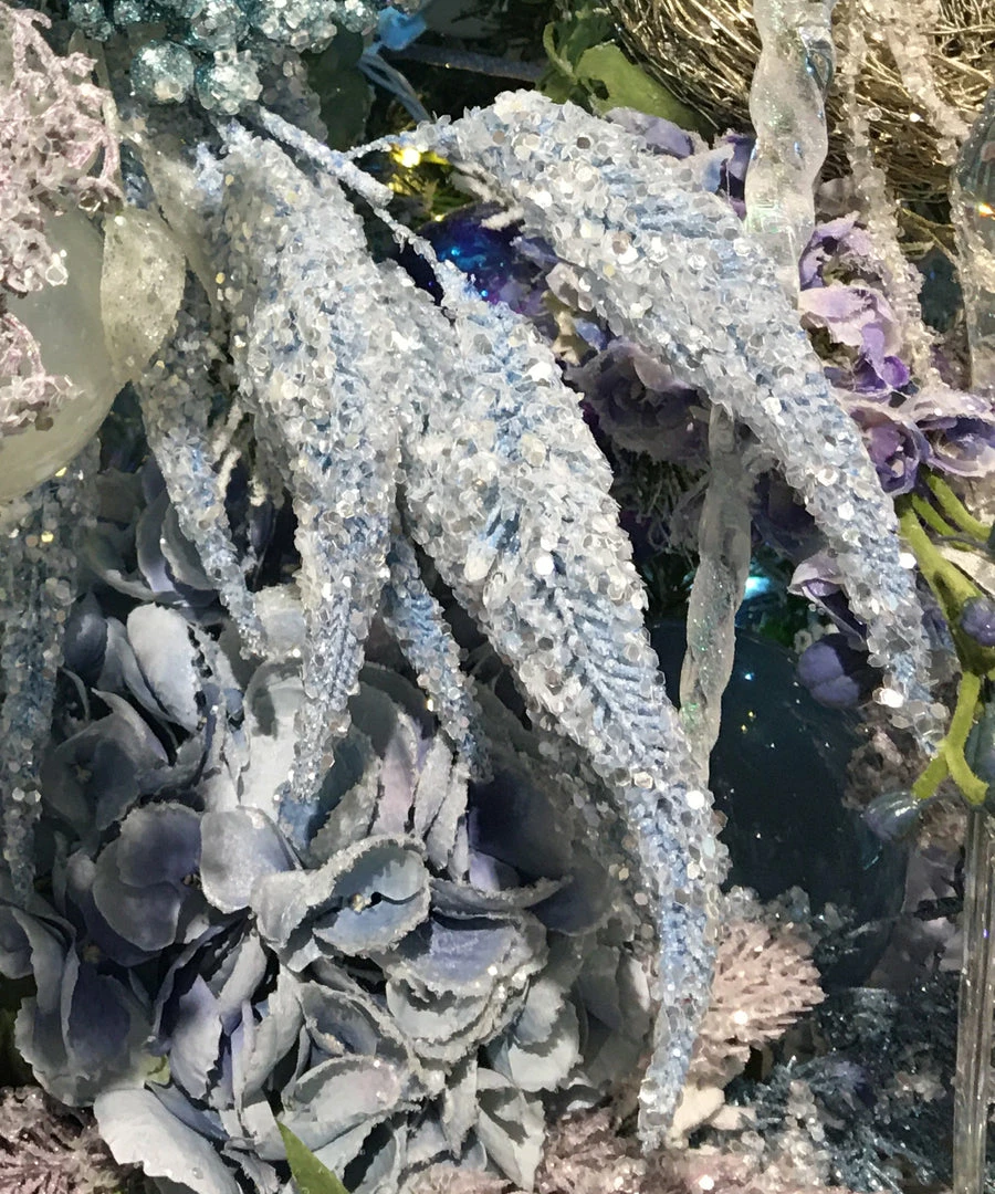 Make your surroundings glisten with these enchanting pastel blue Snowy Okra Picks.